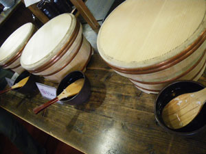 囲炉裏調のバイキングコーナー中央には鉄鍋で野菜タップリ味噌汁、ご飯もお櫃に3種類!