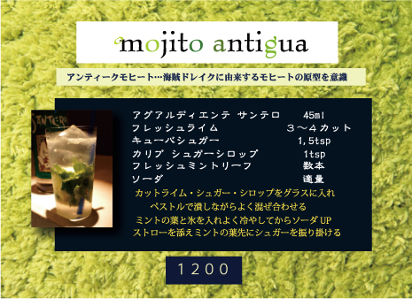 モヒートの原型「ドラケ」を偲ぶカクテルに仕上げました。