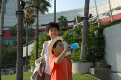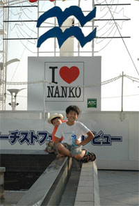 ほとんどが陸地になってしまった‘トンボ池’にて、嬉しそうな詠人とドンくさい杜人