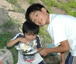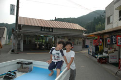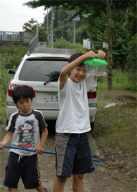 あいにく川遊びは鮎釣りの釣り人がいた事や、雨降り明けの濁りで中止したが、