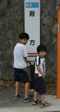 次なる目的地のトンボ池に向かう山道にある阪急バスのバス停「殿方」を発見。