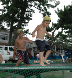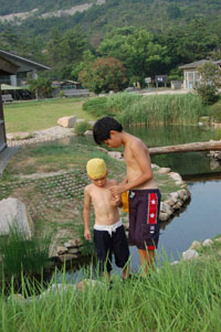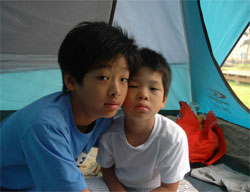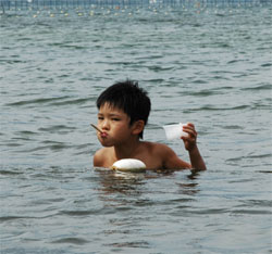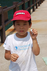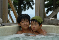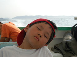 姫路から船で約50分、瀬戸内海に浮かぶ坊勢島の先に‘母と子の島(家島)’がある。 兵庫県が運営するこの島は、日常の都会的生活を離れ完全に自然の中で過す事の楽しさを だが その様に思える様に成ったのは前回 杜人を連れて訪れた時から、 「暑いよう〜」・「のど乾いたよう〜」・「しんどいよう〜」・「足痛いよ〜」・・・と 時の流れは様々なものを洗い流す・・・そう、我々親子の苦い思いでも2〜3年経った今、