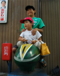 昨年訪れた八木町花火大会の感動が忘れられず今年も行っちゃいました。 今年は花火大会当日に八木町に向かう為、現場でのキャンプ設営は出来ないので 能勢からの山越えで向かった今年は約1時間半、 帝釈天隣のカブトムシドーム(昨年のリベンジ)では居るには居たのだが、相変わらずのショボさ。 去年はキンチャンズを連れて行ったが、今年はその子供達の‘スマちゃんズ’が旅のお供。 ゴールデンウィークに盗まれたテントの後継として購入したばかりのニューテント