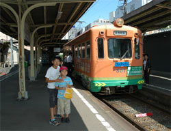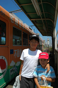 夏休み最後の土曜日ということで賑わう浜寺公園プールで、しっかり?泳いだ後は 三度チンチン電車に乗り御陵前の駅へ。