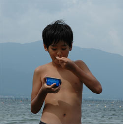 泳ぎにボートなどたっぷり楽しみ、腹ペコになったらお昼だ。