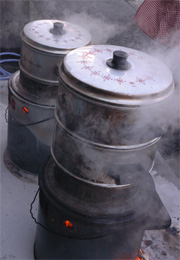 JAZZ&BAR SPACE MEURSAULTでお知り合いになった岡さん・・・ 10年近く前からここで持ちつき大会を催されているが、 年末の寒い中、身体も心も温めてくれる‘鍋’を主体に、