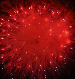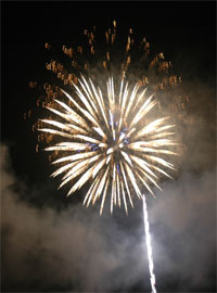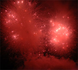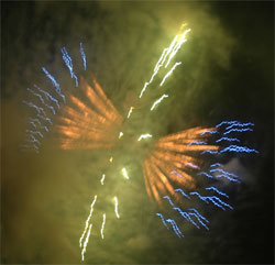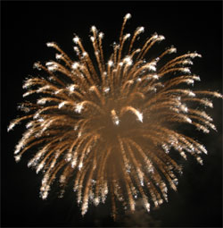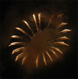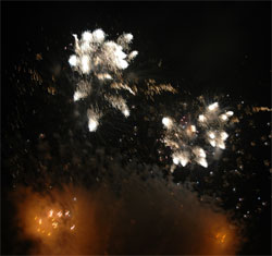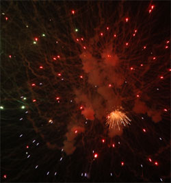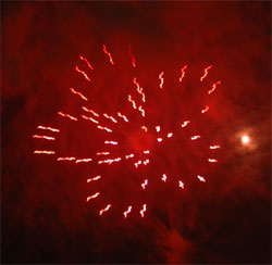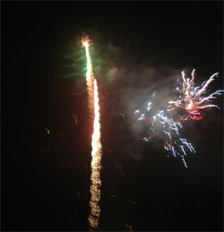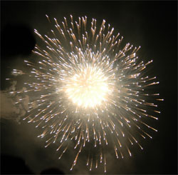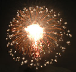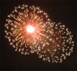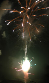 今回のお気に入り‘梅’?型花火 次第にクライマックスへと・・・ いよいよ始った仕掛け花火!