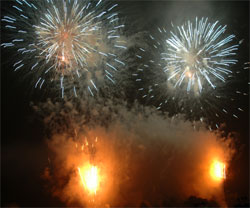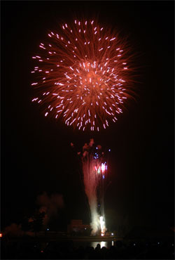 色とりどりに打ち上げられる花火は迫力満点!