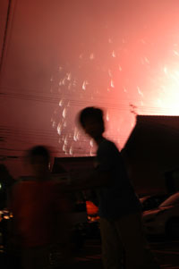 花火を見上げる子供達〜フィナーレ前に脱出・・・民家越しに派手なフィナーレ!
