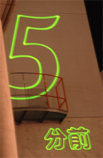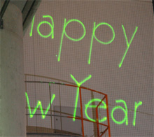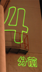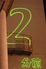 レーザーでビル壁面に映し出された、カウントダウンの時間表示。