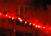 2秒前・1秒前・・・そして・・・ 2006年戌年・明けましておめでとうございます! 花火と紙吹雪が派手に舞うスカイビルの会場