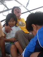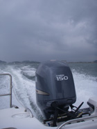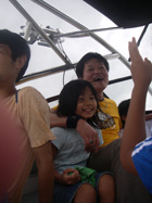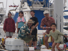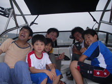 灼熱が収まりお昼になると子供たちや父兄の帰還、会場はにわかに賑やかになり始める。 そしてお腹も膨らんだ事で、お楽しみの‘釣り’&‘クルージング’の時間だ。 ヨットハーバーの桟橋で小鯵をさ引き釣り・・・昨年同様‘入れ食い’だが、とうとう 空がぐずつき出す。