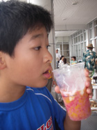 クラブハウスに戻ると、スイカやかき氷などで楽しむ。