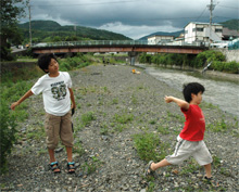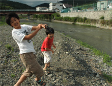 ネットで子供たちを川遊びに連れて行けるスポットを探していると、 そう言えば自分自身も長い間 自然の蛍を見ていない・・・ 先ず「プールに入りたい」と言って聞かぬ子供達のために、 適当にプールで遊ばせた後、お風呂に行こうとして 係りのお兄ちゃんに じゃぁ と、摂津峡に向かい蛍に関する情報収集だ。 上の口にある アユやアマゴの放流や入漁券を扱う組合の集まりの方々に でも 例のネットの日記の記事は、2000年6月28日の日付けで、 子供たちにオオクワガタやカブトムシを見せてくれたり、売りつけようとしてくれたり・・・の 原大橋の手前で見つけた交番に入って、駐在さんから情報収集・・・すると、