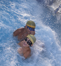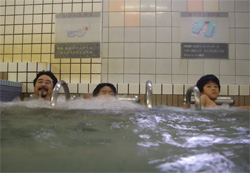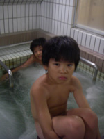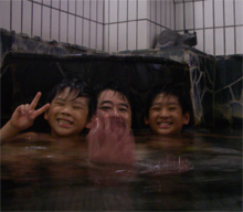 せっかく天然温泉(露天の温泉は、少々蟹味噌臭)なのに・・・ まぁ 何はともあれ、プールに温泉・・・ふやけそうなバカ親子は、