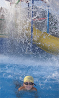 夏休みが終わろうが、日が暮れようが我が家の悪ガキ達には無関係。 9月の一週でオープンラスト、16時以降入園料半額・・・ 風があり肌寒い休日の夕方だが、子供達はお構いなし。 このプール1番の目玉は「バケツプール」と名付けられた遊具のプール。 ワンクッション置かれてるとはいえ、気を抜いていると