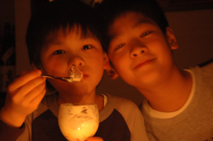 自分で作ったパフェを厳かに食する、この時だけは魔童たちもサイレンとナイトだ。