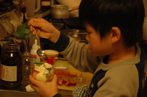 しっかり食べたら、お約束の‘パフェ作り’を満喫すべくキッチンへ移動。