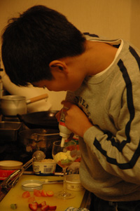 最後に詠人がパフェ作り・・・慎重に素材を積み上げてゆく。