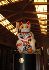 デザインされたエントランスには巨大な招き猫がお出迎え&噂の水沢うどん。