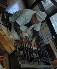 味噌味の焼きまんじゅうを注文、詠人のニックネームなちびまんじゅう、吉永小百合ポスター。