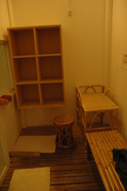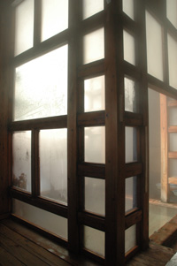 お馬鹿設備のガラス壁で、入浴しながらの眺めは遮られ、せっかくの建物も台無しである。