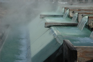 草津温泉・湯畑に流れる、美しき瑠璃色のお湯。