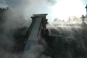 雪の中で悪戦苦闘した後は、待望の温泉だ。