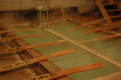 中に入ると皆いっしょ・・・中々風情ある温泉だ。
