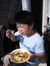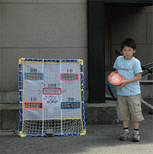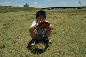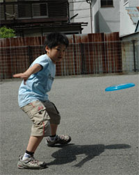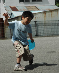 詠人に見つかったからには、そこからは地獄・・・迷惑至極なお遊びに付き合うしかない。 のどを潤した後は下の駐車場でまたもフリスビー。