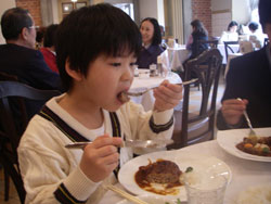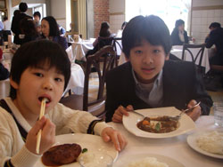 杜人と私はビーフシチュー、詠人はハンバーグのランチ。 文化財の中のレストランでお腹を満たせば、