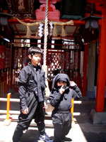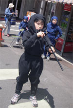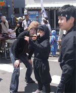 僅かな睡眠で迎えた第2日、この日は子供たちのワクワクデー。 吉田にばかり世話になる訳には行かないので、 500円で忍者に変身でき、7ヶ所設けられた‘まちかど忍者道場’で