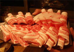 皆さんがよく失敗するのは「アウトドアは焼肉」という固定観念。 ・・・で、我々は豚しゃぶをメインに、サルシッチャ・ドライフルーツ・マグロ刺身・・・