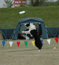 お腹が膨れるとまた暴れたくなる・・・ほんとに良い天気で 前日フリスビードッグ選手権をやっていた運動公園に行き、