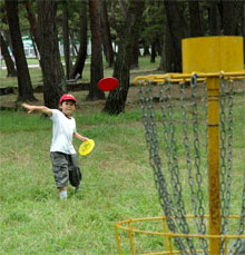 まずはここ何年か夏になると必ず訪れるトンボ池。 野外活動センターに着く頃には、またしても雨。 そう この日2回目のオーバーヒートだ。 この日も雨でお客の少ないセンターのスタッフはタップリあまり、 そうこうするうちに突然エンジンルームから舞い上がる白煙にビビリまくるスタッフたち。 彼らのビビリまくる姿をよそに涼しい顔でラジエーターに給水するオヤジ・・・、 荷物も整理して寝床も仕上げたので小雨の中ディスクゴルフへ。 お腹も膨れたらカブト・クワガタ用のトラップを仕掛けお風呂に入る事に。