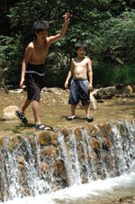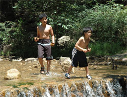 石投げや沢がに採りなど小1時間ほど遊んだところで子供たちは物足りないが、 2週連続の野外活動センターは、これでお別れだ。