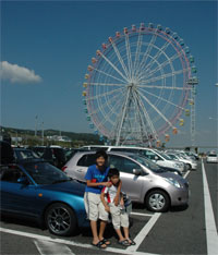 明石海峡大橋を渡りサービスエリアで期待に胸膨らむ子供たち。