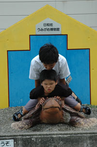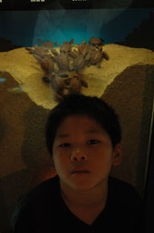 帰りの時間が気になるのに子供達はどうしても海がめ博物館カレッタに入りたいと言う。