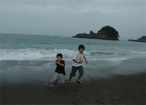 子供たちは堪え切れずに海に向かって走り出すが時間の関係も有りなんとか説得し、