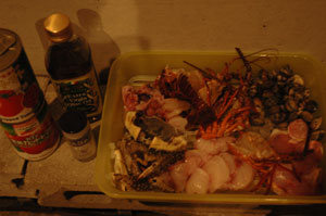 伊勢海老・フグ・糸より・ワタリガニ・ヒイカ・あさり・・・今夜のご馳走の下ごしらえ完了。