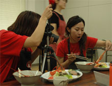取材のエビーズたちとも盛り上がり賑やかだが、隣のグループはとにかく静かだ。