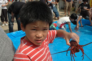 子供達は伊勢海老つかみ取りへ。