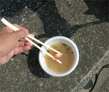 ・・・が、しかし・・・田舎ムードの希薄な発泡スチロールカップに注がれた長者汁は、