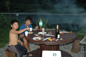 預かっていただいていたので、今夜はここのお庭で海部川のせせらぎを聞きながらのBBQだ。