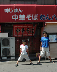 こってり美味しい豚骨醤油味のめん八の‘そば大’&‘八ポーズ’の子供たち。