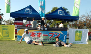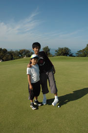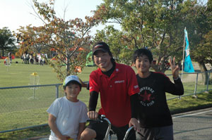 最終ホールで子供たちと・・・・&、大会本部前でチャンピオンの梶山 学 選手と。