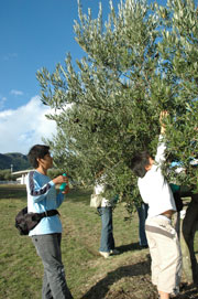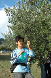 その収穫は任務なのか?オリーブの品種名は「ミッション」、収穫したオリーブの代りにもらえるオリーブオイル。