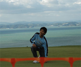 瀬戸内海をバックに投げ下ろす事の出来る美しいコースに感激。