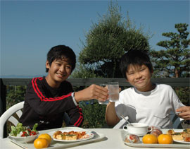 子供たちにも食べられるあっさり味で、小豆島旬の味を堪能した。