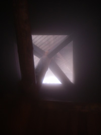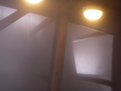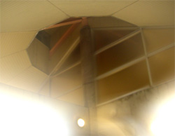 10角形のドーム型の浴室は湯気抜きも10角形、最後の温泉まで共に旅したスパバッグ